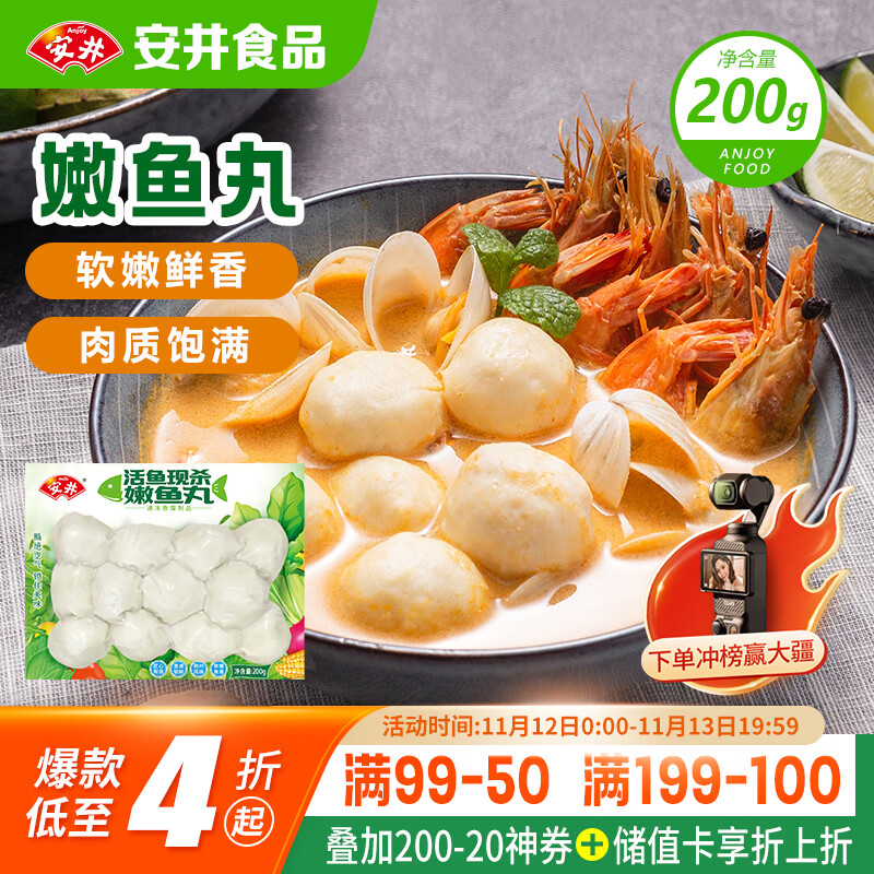 包邮 安井 嫩鱼丸 200g 1包 鱼糜含量≥65% 锁鲜装火锅麻辣烫关东煮丸料