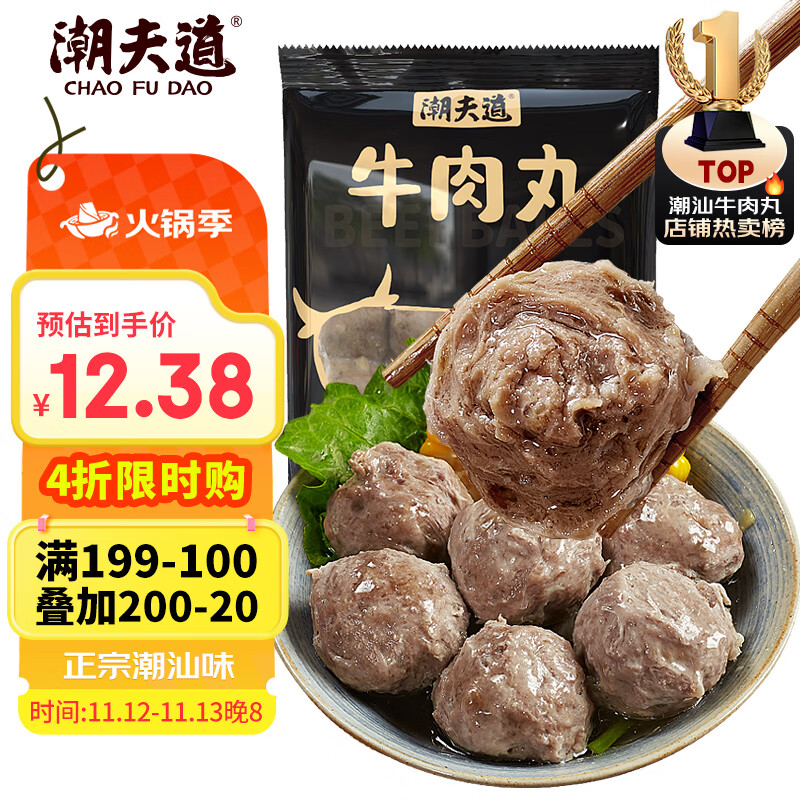 包邮 潮夫道牛肉丸潮汕手打250g 火锅食材关东煮丸子丸料空气炸锅生鲜麻辣烫